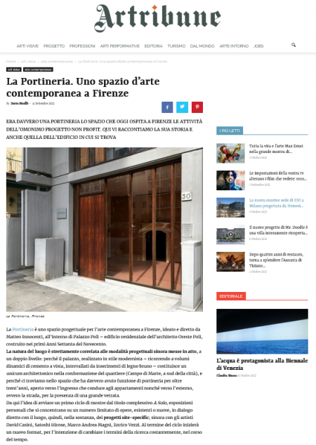 Inaugurazione venerdì 21 aprile 2023 alle ore 18fino al 31 maggio 2023 Alessio Ancillai, Errico Baldini, Gianluca Capozzi, Fabrizio Cicero, Liat Grayver, Orsi Horváth, Gianluca Quaglia, Marco Victor Romano, Germano Serafini, Michele Spina, Zoya Shokoohi, Chiara Zocchi. Super Futuro di Matteo InnocentiMaverick di D.J.MorganI gelati sono finiti di Francesco Sala La Portineria in collaborazione con