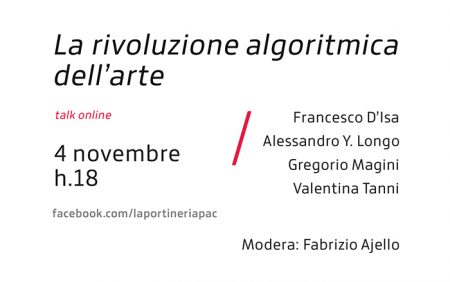 Partecipano: Francesco D’Isa, Alessandro Y. Longo, Gregorio Magini, Valentina Tanni.Il talk online è parte della residenza artistica di Fabrizio Ajello a Studio. Di cosa parliamo quando ci riferiamo ai fenomeni della computer-generated art (CG-art), della interactive art (I-art e CI-art), della computer-assisted art (CA-art)? Cosa sono e come funzionano i programmi TTI, come