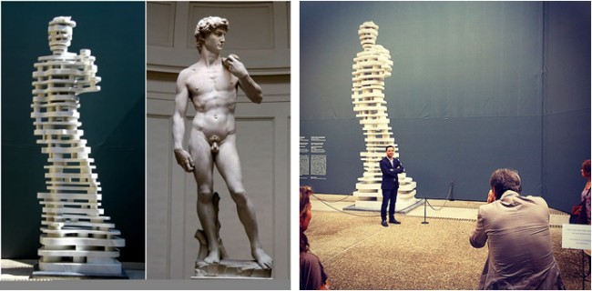 A new edition of Saracino’s “Hero,” will be on display at the Accademia Gallery, Florence during Expo Milano 2015, the global exhibition that Italy hosts from May 1 to October 31, 2015. “Hero,” addressing Michelangelo’s “David,” which has been selected to represent the Italian Pavilion at Expo Milano 2015 as an historic symbol of Italian excellence, is being promoted by the Accademia Gallery in Florence, the Italian Embassy in Washington DC and PMG Italia.