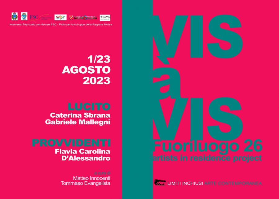 Dal 1° agosto prende avvio la nuova edizione di VIS à VIS Fuoriluogo 26, programma internazionale di residenze artistiche che quest’anno ospita gli artisti Caterina Sbrana e Gabriele Mallegni a Lucito (CB), e Flavia Carolina D’Alessandro a Provvidenti (CB).