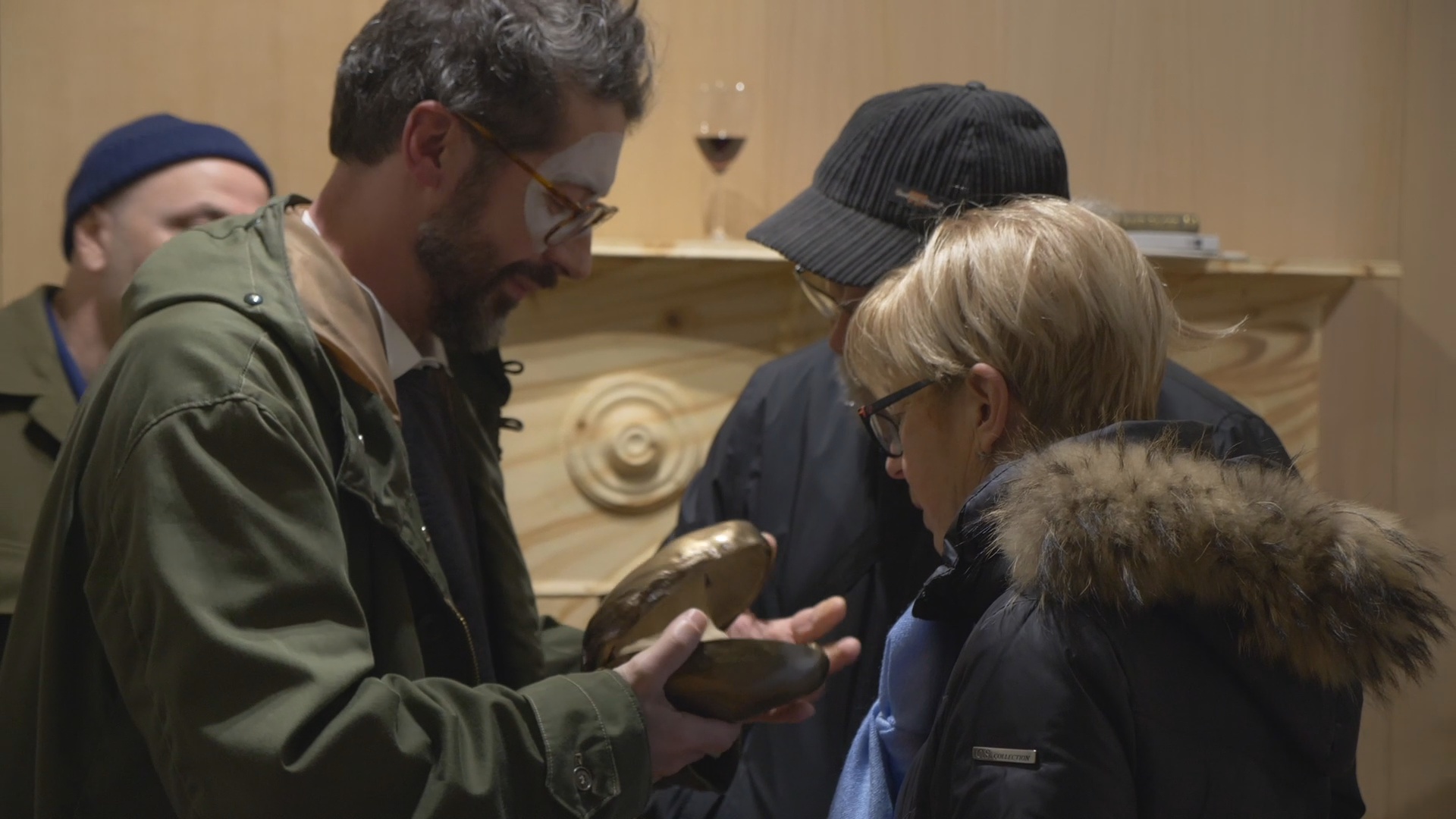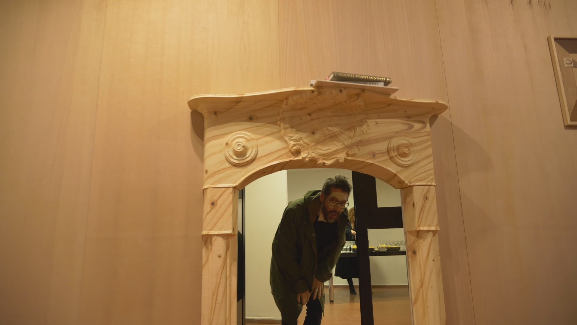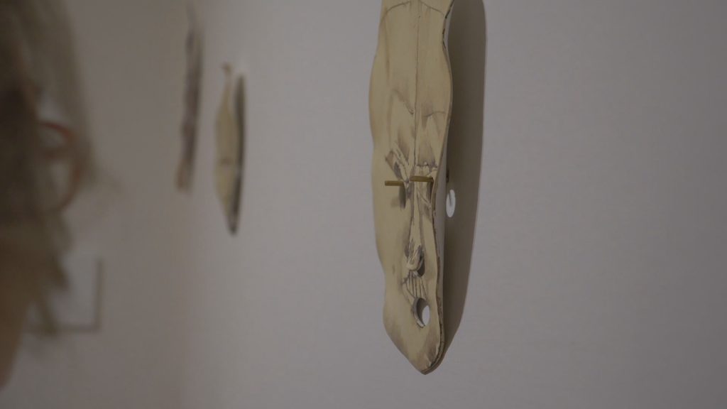 Alcuni elementi figurativi delle opere dei tre artisti, estratti da riproduzioni in cataloghi, diventano il punto d’inizio per un processo di appropriazione, traduzione e camouflage, al cui termine viene creato qualcosa di nuovo (delle maschere, una pochette, un quadro); la storia dell’arte insomma considerata come materia viva, un immaginario collettivo in constante divenire. Lo stesso spazio espositivo viene “trasfigurato”, a somiglianza di una stanza domestica, al cui interno un particolare elemento architettonico, assume la funzione di passaggio: dalla dimensione reale a quella dell’immaginazione.