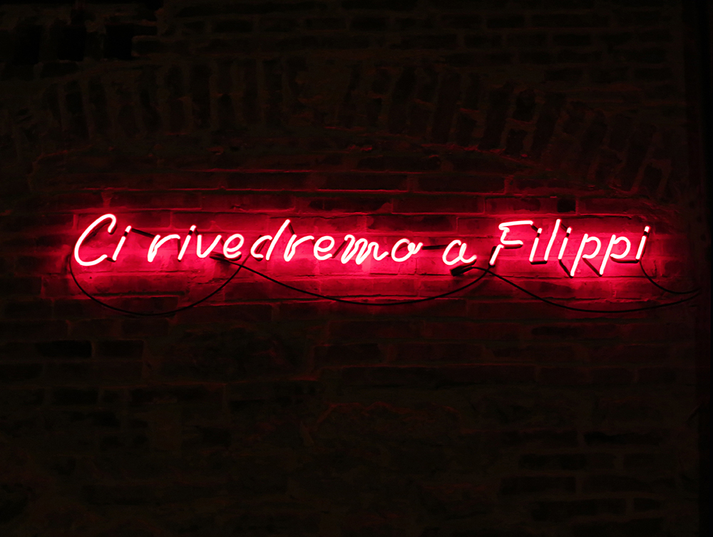 “Ci rivedremo a Filippi”, così la frase che lo spettro di Cesare rivolge in sogno a Bruto – il quale è ormai ossessionato dalla partecipazione alla congiura contro il dittatore – prevedendone la futura sconfitta mortale presso la città Macedone. L’episodio di immaginazione viene riportato dallo storico Plutarco nelle Vite parallele (fine I – inizio