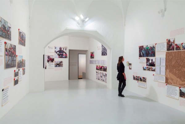– MAQUETTE SU MDF (210 X 110 CM), SPILLE, 47 FOTOGRAFIE MONTATE SU DIBOND, 15 CONTRATTI STAMPATI SU CARTA A4, 1 INDUCE MONTAGE SU DIBOND, 20 TESTI IN PORTOGHESE STAMPATI SU TELA, 20 TRADUZIONI IN INGLESE IN VINILE, 85 NUMERI INCISI, VOLANTINI DELLA CORSA DI CAVALLO, GIORNALI MONTATI SU DIBOND, DIMENSIONE AMBIENTE – PHOTO ELA BIALKOWSKA, OKNO STUDIO COURTESY GALLERIA CONTINUA, SAN GIMIGNANO / BEIJING / LES MOULINS