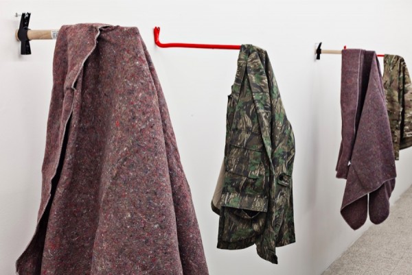 GIACCA MIMETICA, RESIDUI COPERTA TESSILE, PIEDE DI PORCO E UN MARTELLO290 X 100 X 50 CM PHOTO ELA BIALKOWSKA, OKNO STUDIO COURTESY GALLERIA CONTINUA, SAN GIMIGNANO / BEIJING / LES MOULINS