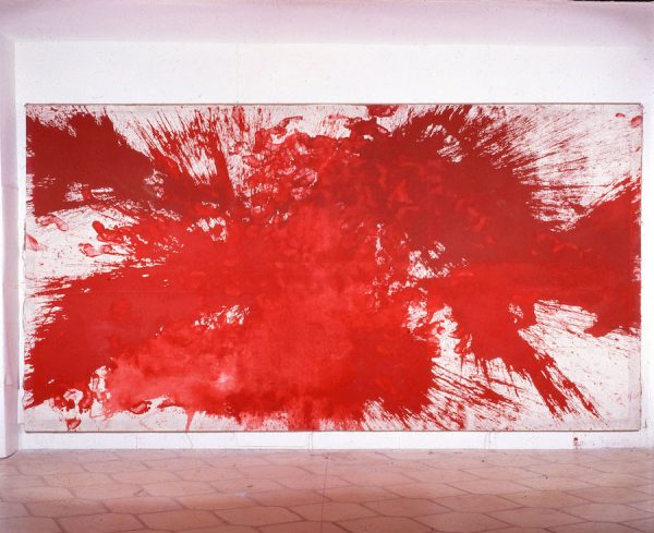 Hermann Nitsch, 18b.malaktion, 1986, Napoli, pittura su juta, 240×450 cm