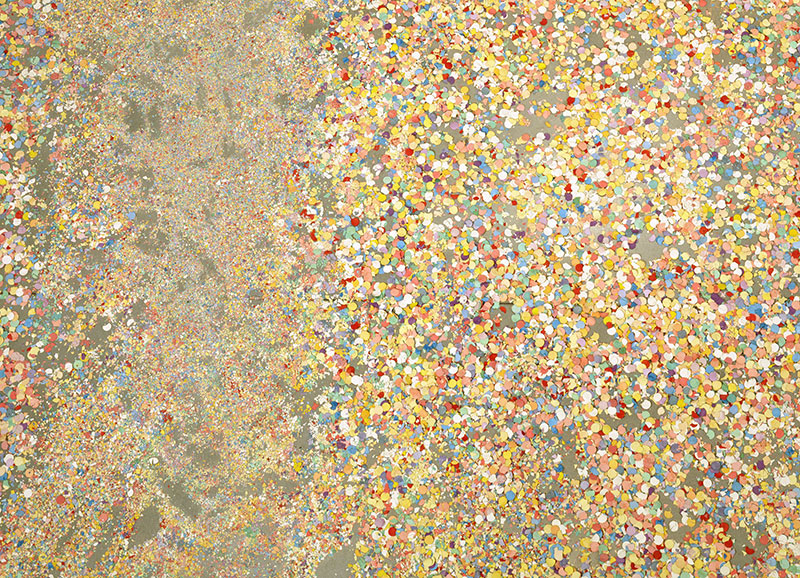 PS – Nel lampadario di ghiaccio il pubblico assiste alla distruzione e alla trasformazione dell’opera, nei coriandoli ne è l’artefice. In entrambi i casi l’evocazione della memoria, la sedimentazione, la forza dell’esperienza si impongono assumendosi la responsabilità del racconto come fatto unico e originale, e perché no, amplificandone le dimensioni e i contenuti, contrapponendosi a ciò che resta: una pozzanghera d’acqua o una spianata di polvere grigia.