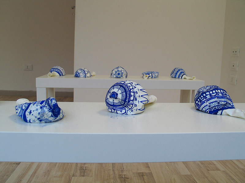 Quando ho visto i “palloncini” nel vostro studio mi hanno colpito per vari aspetti; nello specifico di questa più recente versione per il lavoro e la perizia con cui create un segno che poi, letteralmente, è destinato a decadere… o meglio a diventare altro.