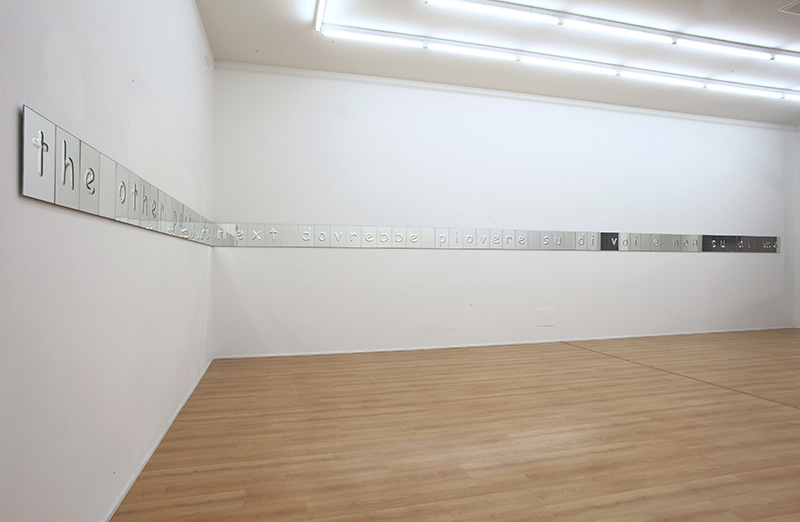 PS – È un progetto sviluppato in due momenti nella città di Prato nel corso del 2012: una serie di specchi esposti nella galleria Die Mauer e una scritta luminosa composta da luci ad incandescenza (ti amo), installata sulle mura di cinta della città, all’altezza di via Pomeria sopra il giardino d’infanzia vicino a Porta Frascati.