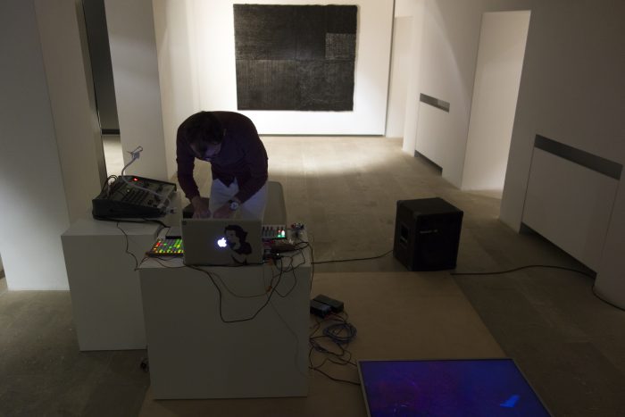 Tutte le opere/installazioni, pur autonome, nella specificità dell’esposizione concorrono alla definizione di un punto focale, appunto la piattaforma degli eventi. Il primo, ad apertura della mostra, è l’intervento sonoro Live Electronics del musicista Tommaso Rosati, a partire dal girato inedito dell’azione Nomi dei Colori Classici (Sinfonia); in un processo di stratificazione, ri-attuato in tempo reale, l’opera video-audio di partenza, già a sua volta derivata da un processo di improvvisazione, diventa stimolo per una nuova composizione.