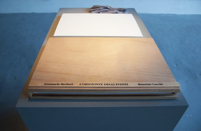L’orizzonte degli eventi di Emanuele Becheri (e Maurizio Cucchi) porta a confronto d’ispirazione reciproca il disegno e la poesia, in tensione rispetto a quella linea ideale prima/oltre di cui tutte le cose, e dunque anche l’arte, vengono generate; inoltre la tecnica xilografica, quindi il rilievo della matrice, anticipava questioni divenute centrali nella pratica attuale dell’artista.