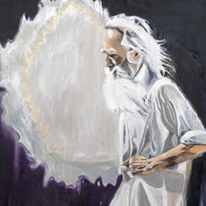 I colori di varia tonalità della pittura astratta precedente si sono uniti a formare un’atmosfera scura, da cui fuoriescono, come visioni esoteriche, i simboli della provvisorietà umana. Così il neozelandese Pete Wheeler (Geraldine, 1978; vive a Berlino), con la serie di dipinti, disegni e sculture realizzati appositamente per questa esposizione, dimostra la maturità della sua nuova fase artistica: al posto dei riferimenti alla situazione sociale – finora formalizzati in scritte, icone dell’immaginario giovanile e personaggi emarginati – compaiono elementi di tipo metafisico.