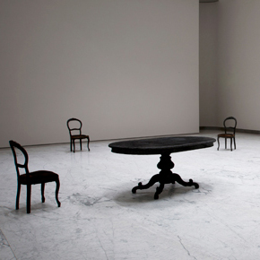 Un salotto estratto dal flusso temporale e ricomposto in una dimensione sospesa – la mobilia è carbonizzata fino al punto limite della propria dissolvenza – diventa d’ispirazione allo scorrere dei ricordi: e proprio in questa vitale contraddizione, di una presenza che contemporaneamente richiama la concreta eventualità dell’inesistenza, si attiva la partecipazione tra artista e osservatore, in nome, pur nella diversità dei trascorsi, dell’affinità delle esperienze umane. La ricerca di Tosatti si pone come una tra le più interessanti dello scenario giovane artistico italiano.