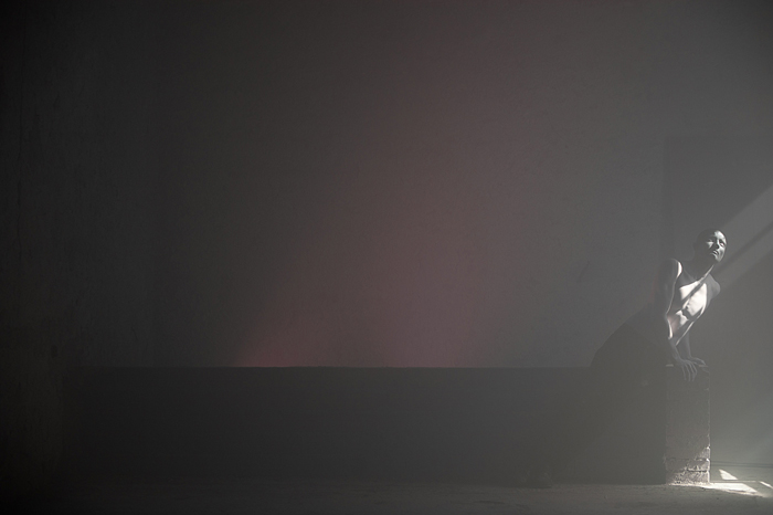 Ogni scatto è una copia della realtà che paradossalmente vale come frammento assoluto, poiché il suo soggetto, bloccato in un attimo qualsiasi, resterà così per sempre. Una contraddizione che il pensatore francese Roland Barthes, da una cui citazione deriva il titolo dell’opera esposta, ‘l’aria è l’ombra luminosa che accompagna il corpo’, superava tramite il tempo stesso – teorizzando che il punctum della fotografia, ciò che di essa ci colpisce emotivamente, fosse l’evidenza che ogni cosa nel momento stesso del suo apparire è già stata, e in quanto tale destinata a finire – e che i due artisti affrontano con l’inclusione dello spazio, quindi del movimento. La scelta non è casuale, ma riguarda lo specifico elemento di contatto tra le due diverse modalità artistiche: quella di Jacopo, rivolta all’espressività del corpo, e quella di Lucilla incentrata sul meccanismo, insieme mimetico e trasfiguratore, del ritratto.