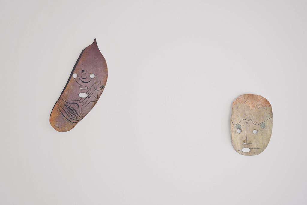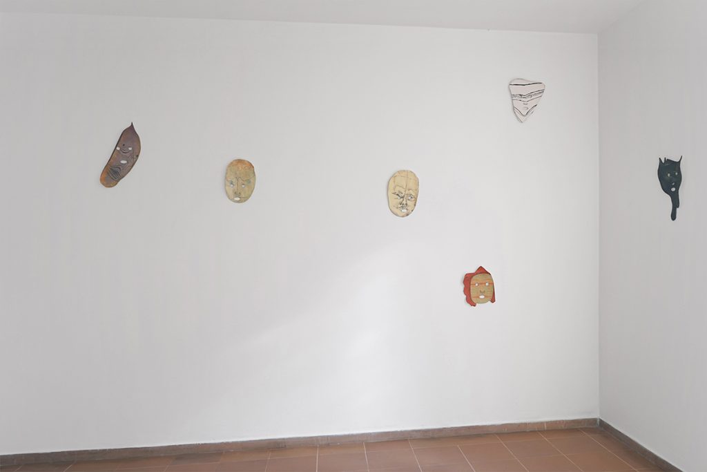 MI: Nella tua ricerca il rapporto con le “tecniche” ha molta importanza – mi riferisco in maniera specifica alla scelta dei materiali, a come li lavori e li assembli: nel nostro caso, penso ad esempio alla cornice del camino, alle stampe su ceramica per le maschere…